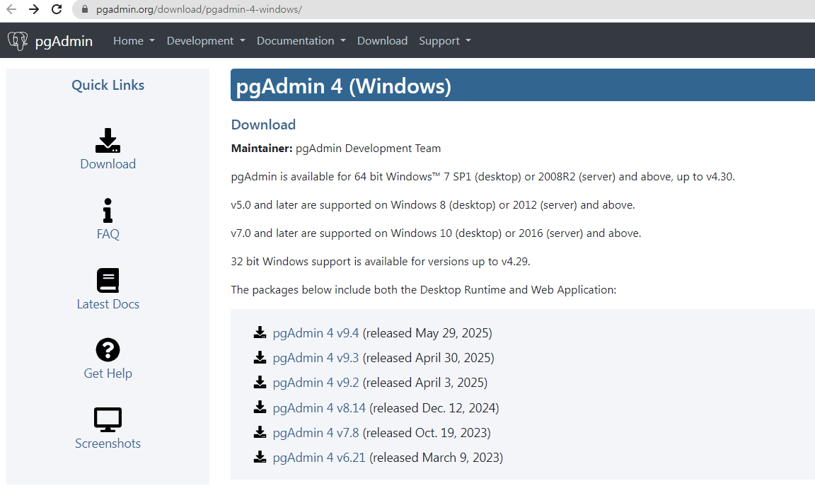 https://www.pgadmin.org/download/pgadmin-4-windows/